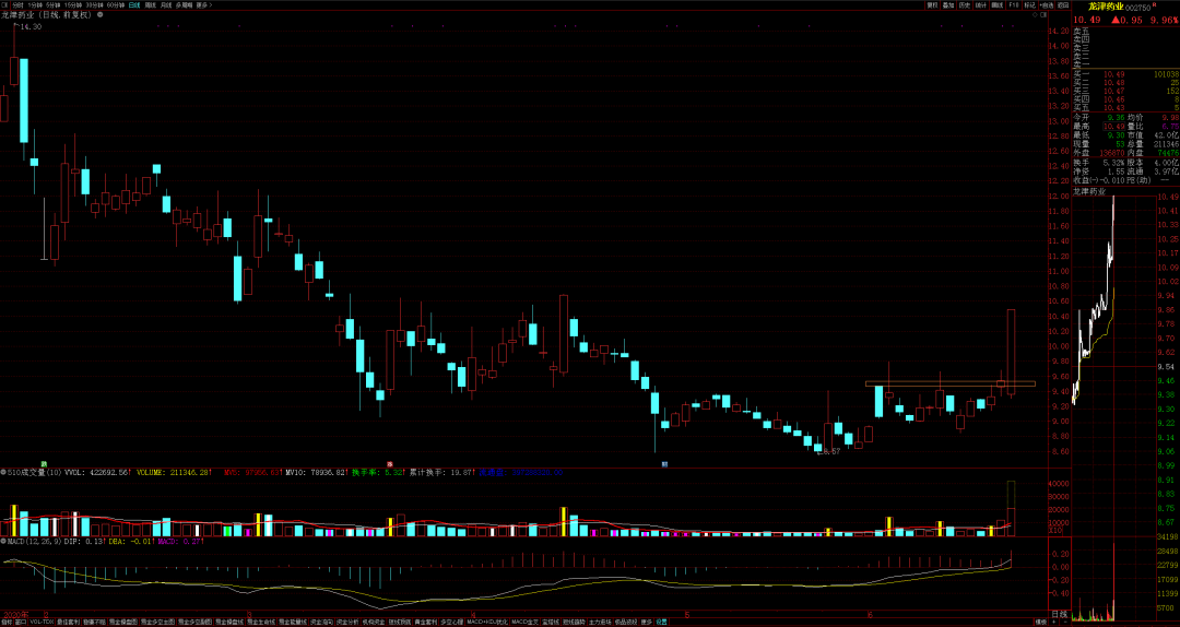 龙津药业(002750)形态逐步修复后,今天放量突破箱体涨停。
