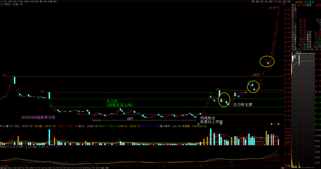 3月25日突破前高后洗盘充分,快速暴涨,以岭药业(002603)当时受到连花清瘟治疗新冠肺炎利好刺激,成为明星股之一。