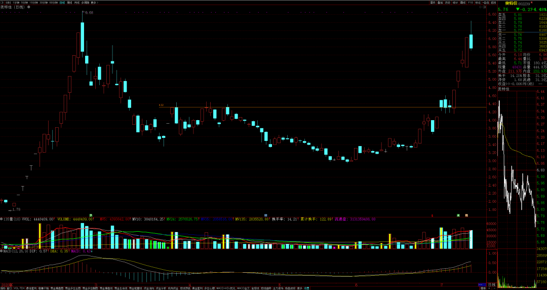 奥特佳(002239)与光大证券类似地在拖前高后三阴先,之后4天3板。