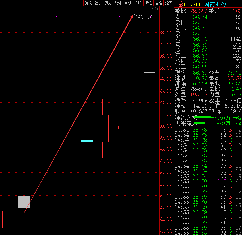 国药股份(600511):6月15—24日8个交易日涨51.62%,其中4个涨停板;