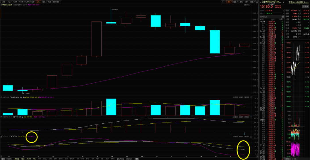 第二、A50期指、上证50、上证指数预判MA20支撑,下周将验证;A50期指周五晚间继续反弹0.66%,且KDJ的J值已经开始上拐。