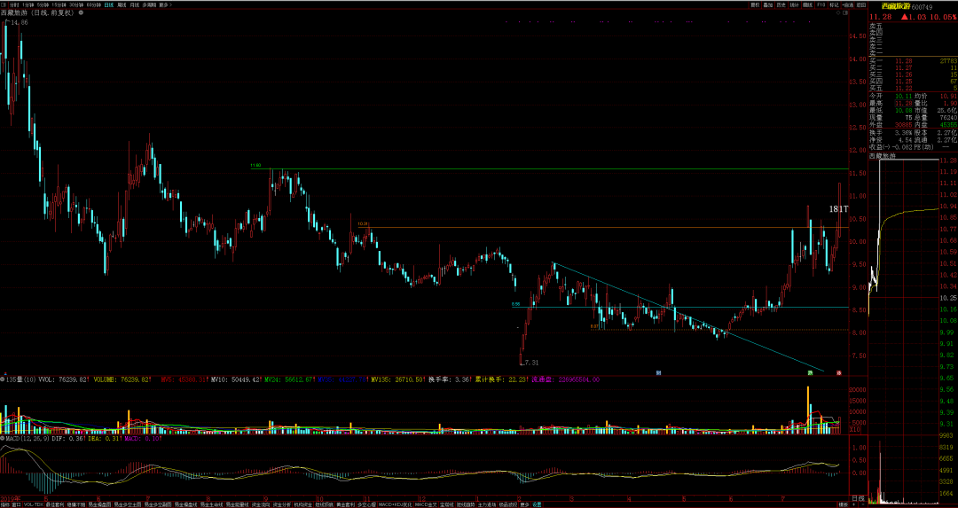 大湖股份600257,渔业板块,公司主营生态淡水产品放养;国内经济大循环最基础的民生项目就是“食”;技术形态已经突破。 安居宝300155,区块链概念,5天3板,比特币刷新近一年以来新高;全球央行加速数字货币研发;公司是广州市停车行业区块链电子发票开具试点的首批应用区块链电子发票的两大停车平台之一。技术形态上,近期连续放量突破,确认缺口有效。 神奇制药600613,医药板块,流感概念补涨股。第三批带量采购官宣启动;公司OTC业务覆盖感冒止咳用药。技术形态为涨停双响炮突破。 西藏旅游600749,旅游板块。西藏本土第一家上市企业,西藏旅游业龙头。跨省组图放开,利好旅游股。该股相隔13个交易日两个涨停形成双响炮(第一个涨停尾盘被砸)欠缺的是第二板缩量。 北玻股份002613,装配式建筑、光伏、创投概念,前期活跃股。住建部等十三部委印发关于推动智能建造与建筑工业化协同发展的指导意见;公司制订的硅巢装配式材料产品被住建部批准发布成为第一个行业标准。按周期看,涨停板上获得支撑后,10天内2板,这是要再来一波的信号吗? 银禧科技300221,头盔+长寿药概念。公司是一家集研发、生产、销售和技术服务于一体的高分子类新材料改性塑料供应商,5月19日在互动平台上表示,公司有生产头盔专用料;孙公司苏州引航生物拥有烟酰胺单核苷酸产品。技术形态上,反复在MA144/233下方放量试图突破,且反弹放量、回调缩量,有效突破后,希望能打开上涨空间。 华林证券002945,券商。公司是国内首批成立的综合类证券公司之一,拥有证券业务全牌照。形态上似乎“学”财通证券7月29日开盘后快速拉板,但全天成交量少了些,8月3日高开概率大,看量能能否明显放大了。 领益智造002600,苹果产业链。苹果财报超预期,盘后大涨6.4%预计股价创历史新高;公司是苹果产业链功能件龙头,在苹果供应链模切业务中占有较为稳定的市场;对终端品牌客户苹果的收入占比各期均超过50%。与6月1日涨停相隔42个交易日,周期规律明显,这是涨姿势了。
