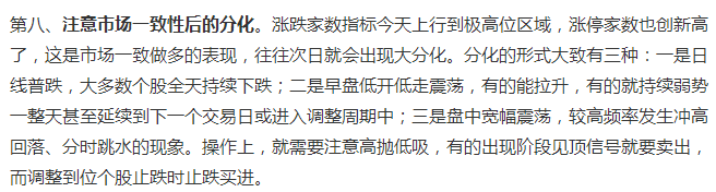 昨天收盘后的复盘笔记的标题是《明天注意分化》: 第八个观点是:注意市场一致性后的分化。