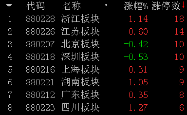 地区板块排序看,浙江、江苏这两江一直保持较高热度,也产生了不少牛股。