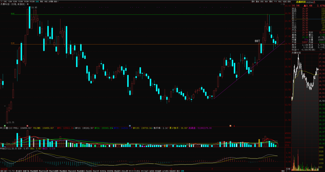 航锦科技(000818) ,公司子公司长沙韶光自主研发的现场可编程逻辑门阵列(FPGA)芯片收到采购订单;公司自主研发的国产高性能GPU芯片SG6931布图设计获得专有权保护,目前,该芯片已 列入国产某型号军用加固计算机元器件清单;公司的在军工领域有较为深刻的研发和销售经验,未来除加紧研发下一代芯片供应武器装备外,也会利用好自身的研发技术和能力,拓展自主可控芯片在民用领域的市场;公司和保利防务共同投资设立产业基金,可以为公司现有军用集成电路设计、研发、生产、封装的产业链带来新的机会和技术;公司以长沙韶光为主体,收购武汉导航院10.67%的股权(2020年继续收购至27.66%),切入包括北斗3在内的星空互联通信领域。 叠加芯片、燃料电池、聚氨酯概念。 双涨停突破后回调,涨停板支撑,地量止跌,可望再反弹。