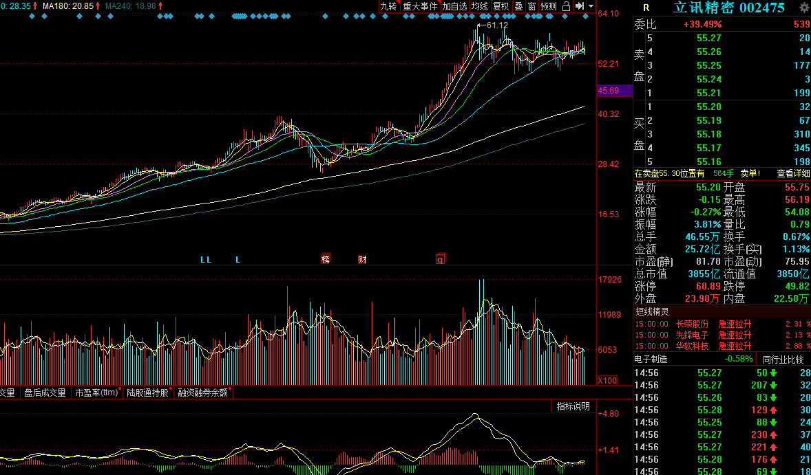 大家好,我是立讯精密,这个板块我是里面的老大哥了,就歌尔,蓝思能当老大?别搞笑了好吧,和我比?他们就是弟中弟!大家请看我的股价大长腿!高富帅就是形容我的, 我的智能可穿戴产品需求旺盛,新、老产品依规划如期进展。智能手表、无线耳机是目前最具市场成长潜力的智能可穿戴产品,我已成为AirPods 主力供应商,并开启Apple Watch组装业务。2020H1,SiP 工艺顺利量产,产品渗透率及应用范围未来可望持续提升, 配合客户全球化布局,加速制造业出海,因伴随全球头部客户成长,我外销比例达90%以上,从股价上看 我也是一路高歌,期间没有大幅度回撤, 蓝思,歌尔弟弟 你们前面那么大幅度的回调,就这你们还想跟我争夺老大?在想什么呢?但是大家也要注意,我目前在高位震荡蓄力,不要贸然入我,待我企稳入我不迟,相信我,从没让人失望过!我就是电子的老大! 大家支持的,就点关注我!