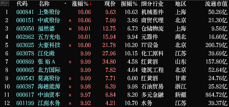 一是供气供热,板块内9只个股涨停,龙头华天热力反抽8天6板,新天绿能10天7板,重庆燃气4连板,低位补涨的洪通燃气5天3板、新疆火炬2连板、长春燃气5天2板、南京公用涨停,还有2只ST股涨停:ST浩源、*ST中天,另有7只涨超4%。