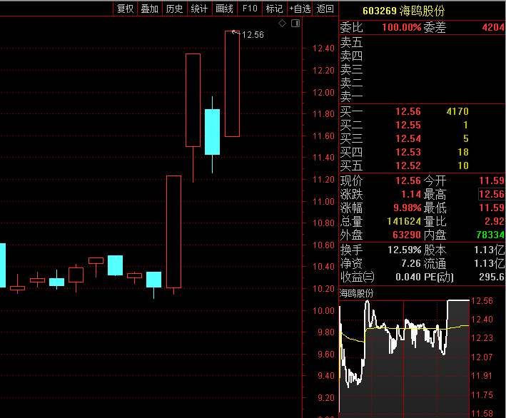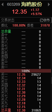 海鸥股份4月14日涨停,收盘买盘挂单如下图: