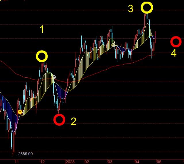 3,大盘自开盘以来的32年, 一共运行了7906天, 按照我们的大盘超预测时空模型( 所谓超预测, 就是有可能比较准确地预测大盘的未来走势), 大盘五一后可能继续反弹2天左右,即反弹到5月5日周五, 反弹高点大致可能见到3362.84 点左右, 然后继续调整11个交易日到5月21日周一左右, 整个4浪的回调才会完成, 之后大盘会继续上涨走出5浪创出新高!